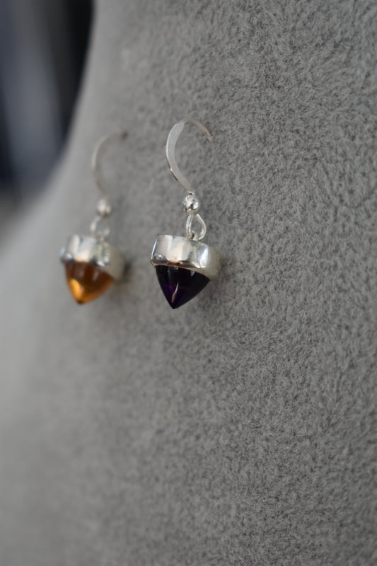 Boucles D'oreilles Agates Noires 18x13 et Calcédoines 10mm