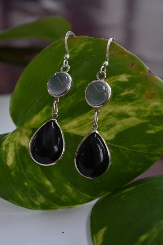 Boucles D'oreilles Agates Noires 18x13 et Calcédoines 10mm