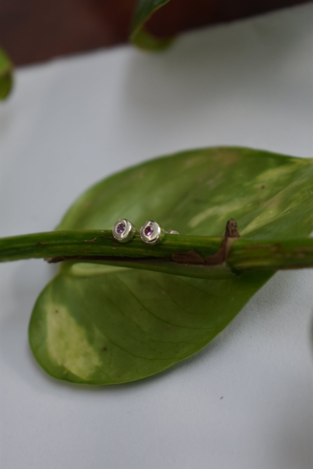 Mettant en valeur deux saphirs roses de 2mm serti dans la masse, qui sublimera vos oreilles de son éclat. Ce bijou est entièrement fait main en Alsace. Il allie élégance intemporelle et un savoir faire artisanal.