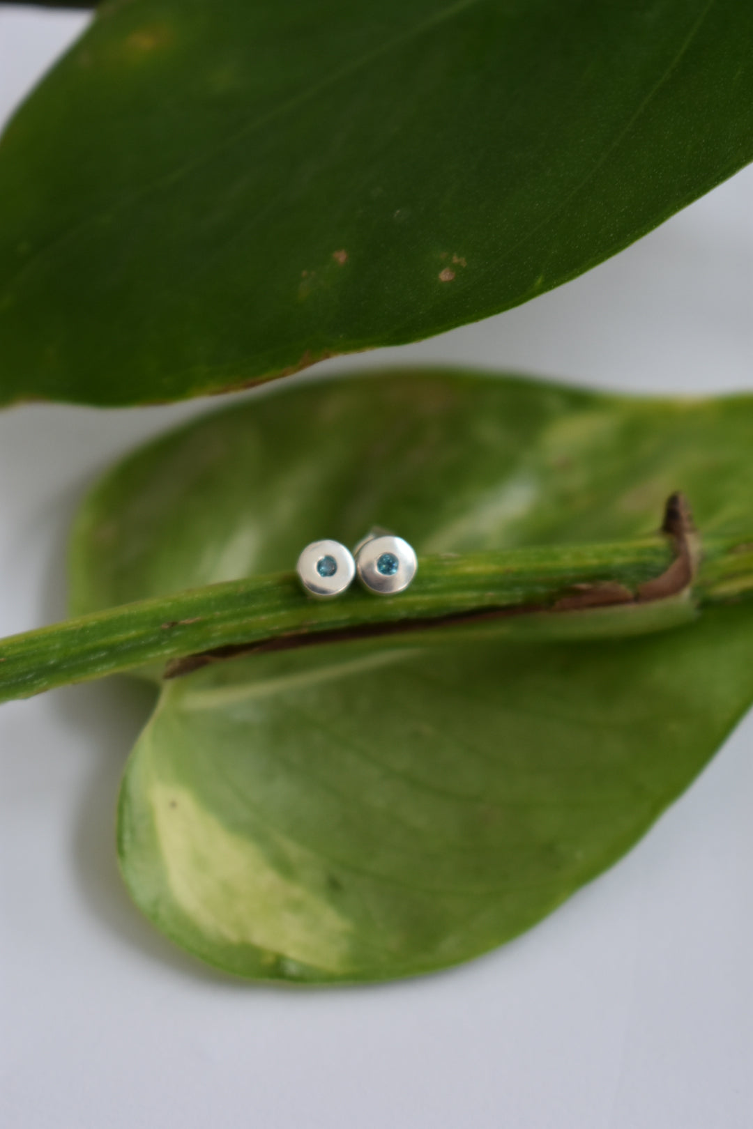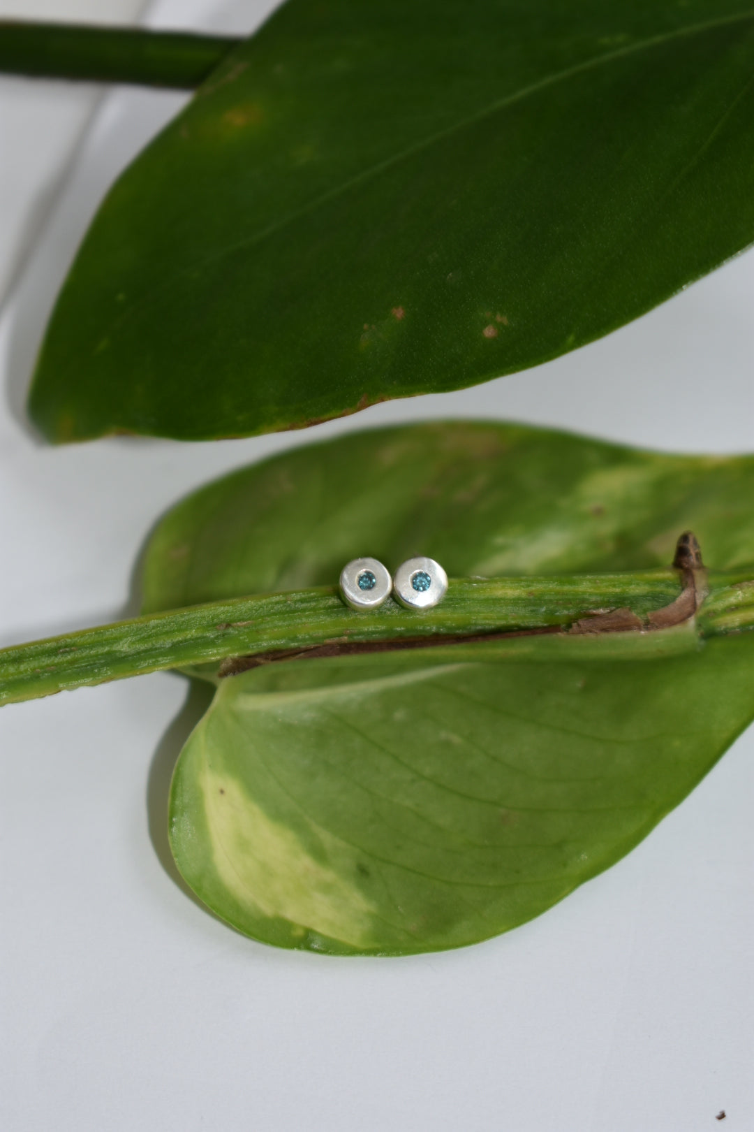 Mettant en valeur deux diamants bleus de 2mm serti dans la masse, qui sublimera vos oreilles de son éclat. Ce bijou est entièrement fait main en Alsace. Il allie élégance intemporelle et un savoir faire artisanal.