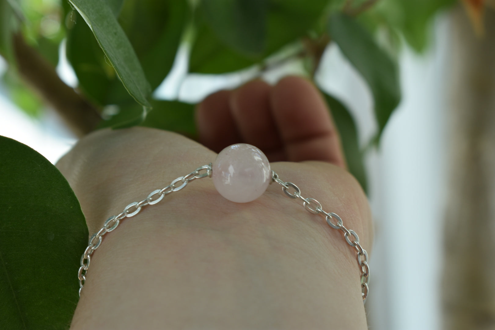 Mettant en valeur une perle de Quartz Rose de 12 mm maintenu à une élégante chaîne forçat plate 2,9 mm, apportant solidité et légerté. Le bracelet a une longueur totale de 18cm.