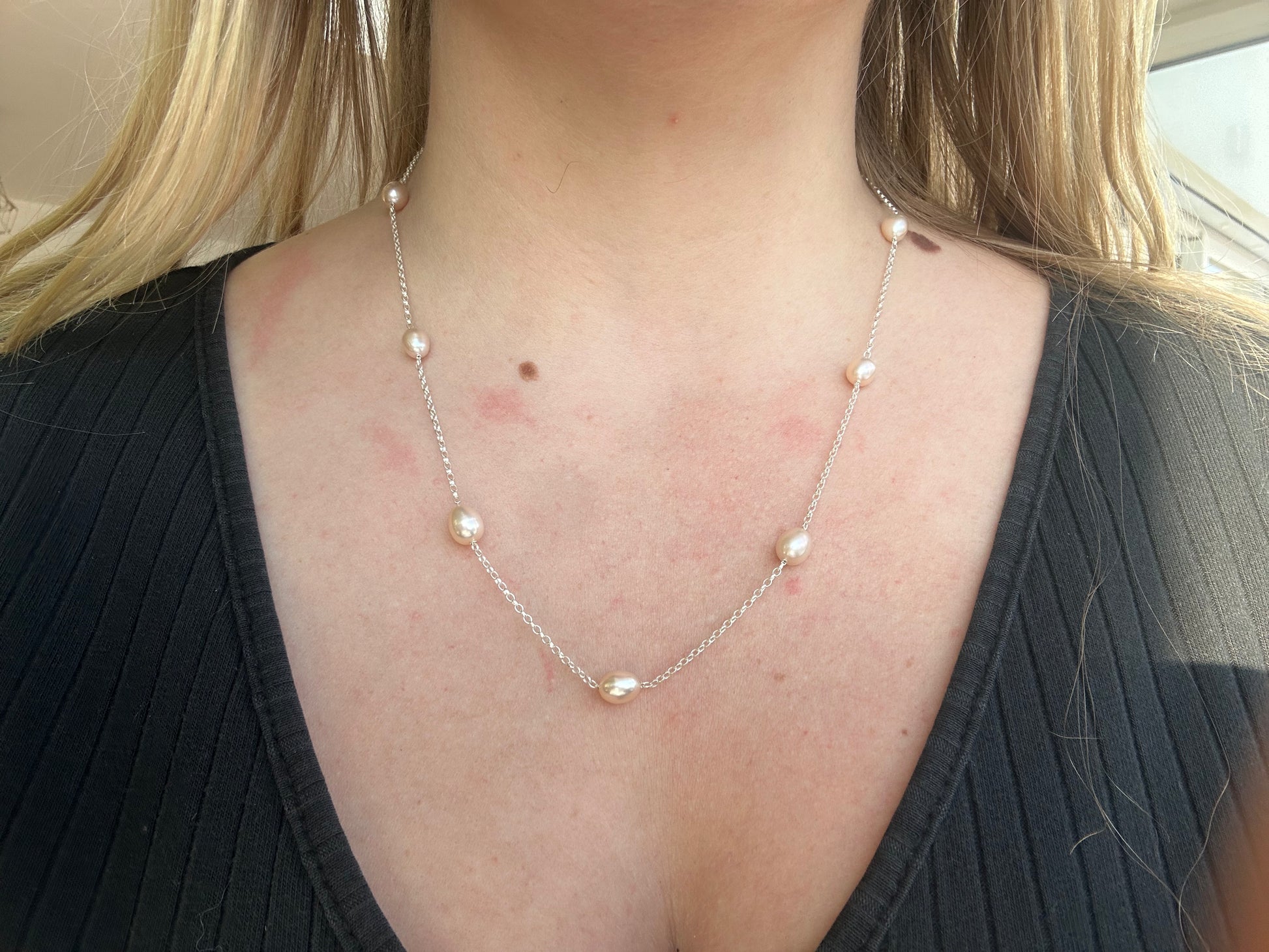 Mettant en valeur 7 perles d'eau douce dorée de 8x6 mm montées sur une élégante chaîne Jaseron ovale. Ce collier de 52 cm allie classe et élégance avec une touche d'intemporalité.